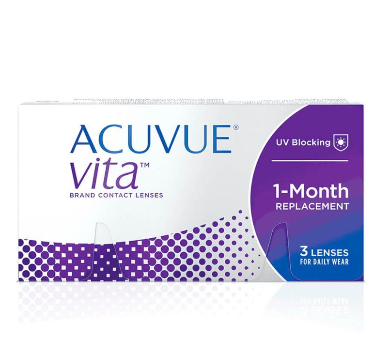 Acuvue monthly lenses come in various powers to meet your vision needs, with some even offering astigmatism correction. Crafted from silicone hydrogel -- one of the most breathable contact lens materials -- Acuvue Vita was recently rated superior compared to leading monthly contacts in terms of overall comfort in weeks 1, 2, 3, and 4.